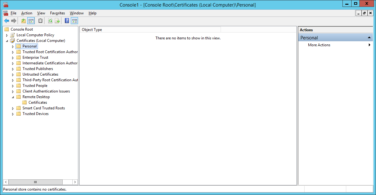 This is because the configuration data for RDSH is stored in the WMI, Win32_TSGeneralSetting class in WMI in the rootcimv2TerminalServices namespace. You will need to change the certificate from default using the following commands.