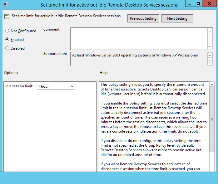 In the Group Policy editor, I have set the idle limit on the sessions so that if users are inactive for over a hour their session will be terminated.