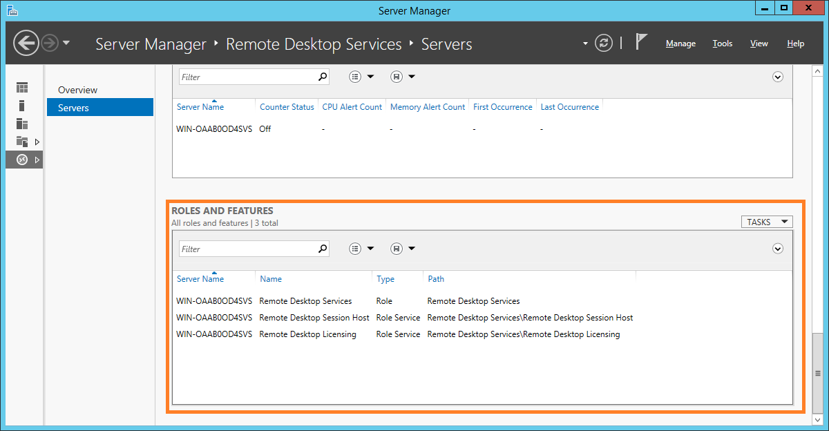 This image shows the roles and features that have been installed, as you can see the session host and remote desktop roles are shown as installed.
