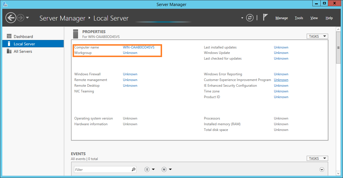 As this is a workgroup server (non Domain) you will need to configure the Fully Qualified Domain name.